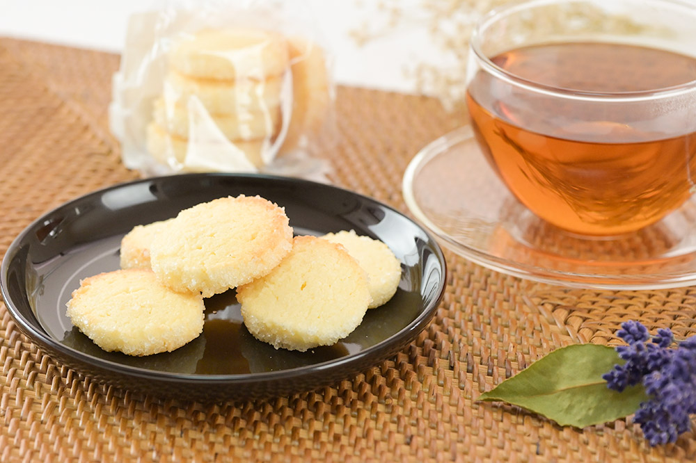 ココナツファインを粉と同じ量を入れサクサク感とココナツの風味、発酵バターのみ使用した風味豊かなクッキーです。