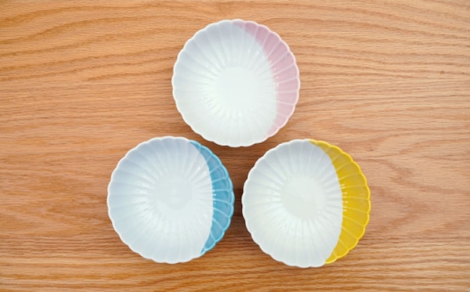 - 【セット内容】 花しのぎ 小鉢 ハーフカラー×3点 (ピンク・イエロー・ミント)各1 計3点 【サイズ】 径13×高5.5cm ※表記サイズは目安です。ひとつひとつ個体差がある場合がございます。 【対応機器】 電子レンジ○ / オーブン× / 食洗機○ 【加工地】 長崎県波佐見町