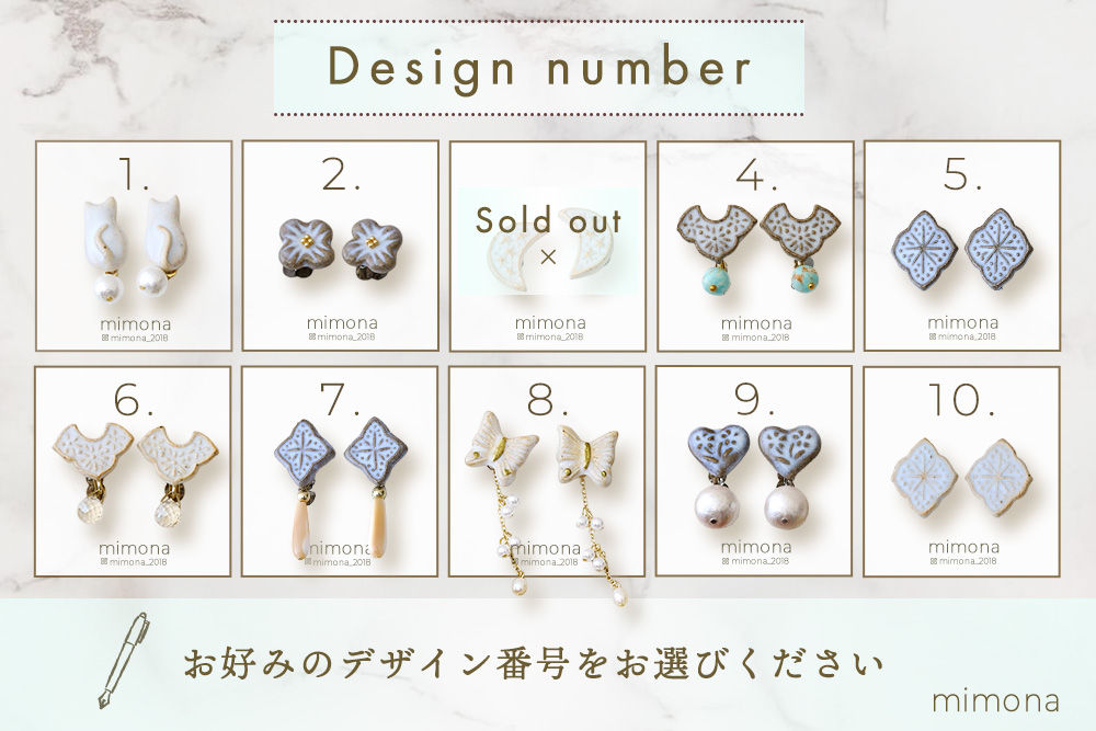画像から『お好きなデザイン番号』と、『イヤリングもしくはピアス』をお選びいただき、