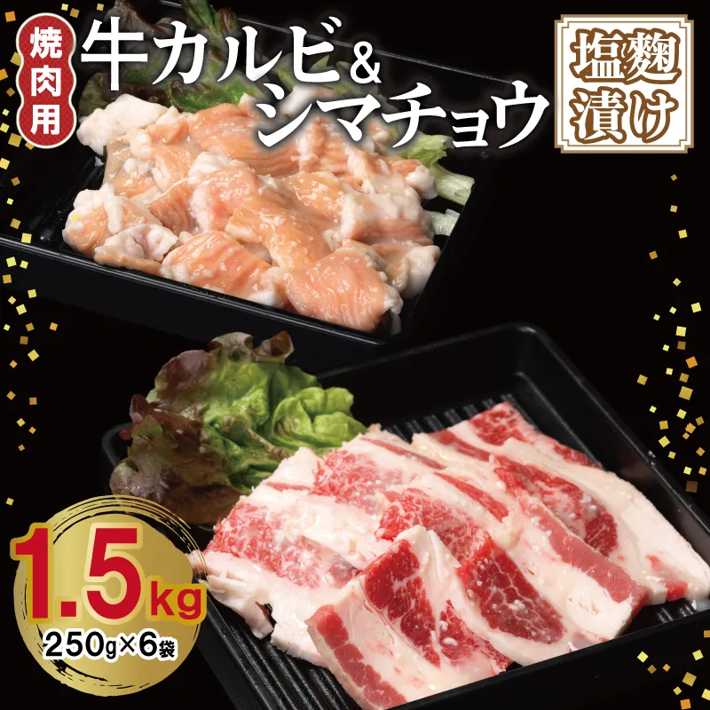 牛カルビ&シマチョウ 塩麹漬け 焼肉セット 合計1.5kg【味付け 小分け 焼くだけ 簡単調理 BBQ 250g×6袋 牛肉 ホルモン】 G3401