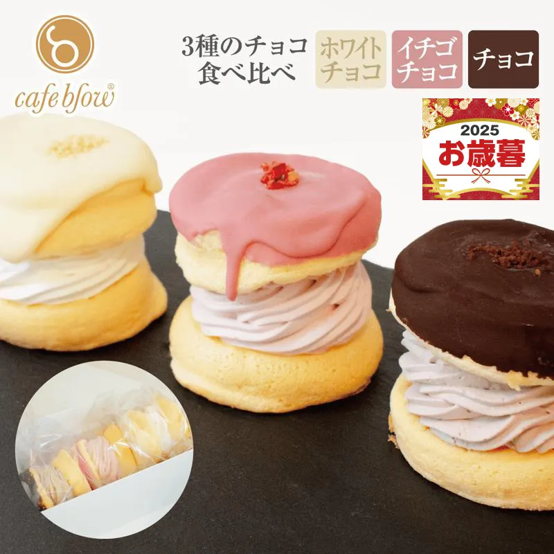 【お歳暮対応】パンケーキカフェcafeblowのチョコパリふわふわパンケーキ3種3個入(ホワイトチョコ・ストロベリーチョコ・チョコ) 010B1503o